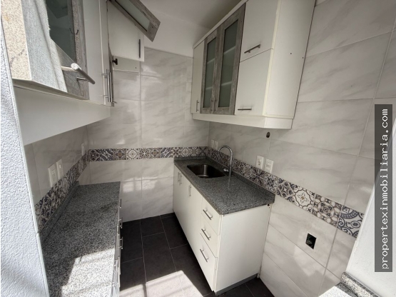 Cocina definida, completamente equipada con muebles aéreos y bajo mesada, ofreciendo gran capacidad de almacenamiento.